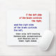Lê, em letras vermelhas, azuis e pretas, "Se o lado esquerdo do cérebro controla o direito, e o lado direito do cérebro controla o esquerdo, então apenas democratas de esquerda, progressistas e liberais estão com a mente certa."