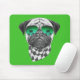 Características deste design um retrato do pug dentro com óculos de sol e um lenço checkered preto e branco.