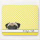 Cãozinho bonito com padrão de gingham branco e amarelo com nome.