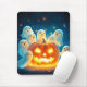Um fantasma lúdico e adorável do Halloween flutuando e brilhando ao redor de uma abóbora. Perfeito para capturar o espírito mauzinho e doce da estação.