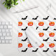 Padrão elegante, na moda e sofisticado com abóboras e morcegos. Presente moderno e moderno, perfeito para o Halloween.