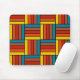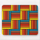 Este mouse pad tem um design de quadrados feitos de retângulos em cores dos anos 70.