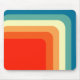 Este mouse pad tem um design dos anos 70 de quadrados concêntricos em tons retrorados de azul, branco e laranja.