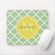 Um mousepad verde-quatrefoil primavera verde-chic com um crachá monograma amarelo brilhante que você pode personalizar adicionando seu nome e inicial a. Esta é parte da Coleção de Primavera Amarelo Verde Nilo e Lark Amarelo.