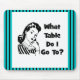 Está aqui um design gráfico retro do divertimento que caracterize uma mulher que pondering "que mesa eu vou?. Este design trabalha bem para grupos de Bunco, garçons, garçonetes, restaurantes, bares ou apenas para o divertimento.