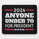 Design de letras mesquinho e engraçado com a citação engraçada "Qualquer pessoa com menos de 70 anos para o Presidente 2024". O perfeito equipamento para as próximas eleições nos EUA e para todos aqueles que desejam um presidente dos EUA ligeiramente mais jovem.