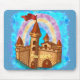 Rainbow Castle mousepad, t-shirt, roupa do castelo, presentes de fantasia pela Ilustração ArtMuvz. Camiseta do castelo bonito, saco de tote, chapéu, caneca. Dons do Castelo Mágico e roupa da princesa. Para personalizar, adicione seu nome ou adicione texto. Personalize este mousepad do castelo para torná-lo exclusivo seu ou para dar como presente personalizado