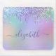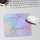 Pasta de rato cômoda, cômoda, com falso arco-íris de cor unicórnio, a gotejar contra um fundo de roxo, rosa, azul, verde e amarelo. Personalize com seu nome em um script roxo de tendência na moda.