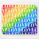Este tapete colorido é decorado com um fundo arco-íris de cor d'água e um padrão de Amor é Amor na tipografia na moda branca.