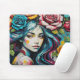 Mousepad Rapariga com Rosas no estilo de aquarela