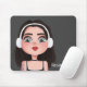 Mousepad Rapariga de Cartoon com Fones de ouvido de Cinza
