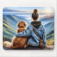 Mousepad Rapariga e Ouro Retriever Montanha Sunrise