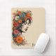 Mousepad Rapariga retrô com flores no seu pasto de cabelo