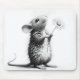 Esboço bonito de um rato segurando uma margarida isolada sobre um fundo esbranquiçado