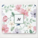 Placa de Mouse com Monograma de Flores Rosa com Cor de Água Moderna