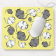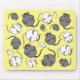 Este lindo mouse pad tem um monte de cinzas e camundongos brancos com um fundo amarelo.