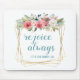 Este belo mouse pad com o verso bíblia "sempre alegria" (1 Tessalónica 5:16) é perfeito para qualquer mulher de fé. É lindíssima, flores cor-de-água, cor-de-rosa e branca, sabedoria, verde natural e letra moderna em dentro de cor-de-rosa mole múltiplas camadas de quadrados de ouro pareceriam excelentes em qualquer mesa. É um lembrete excelente para ser alegre, não importa o que esteja acontecendo porque Deus está com você, abençoando você com Sua força, graça e amor. Podem ter a certeza de que há benção a ter em todas as situações. Compre um para você e um para um amigo ou amado.