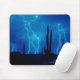 Mouse pad mostrado com uma impressão de foto de uma bela cena de tempestade de raios no deserto. Personalize este item ou comprar como está. Imagem do stock