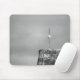 O Mouse Pad "Pronto para a Tempestade" é uma haste de relâmpago no pico de um telhado de celeiro com nuvens de tempestade pairando ao fundo. Feito em preto e branco.