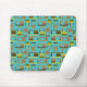 Este mouse pad tem uma design moderna do século médio de retângulos arredondados em tons de verde e marrom com buracos em um campo de turquesa. Se você gosta do design, mas prefere cores diferentes, me mande mensagem.
