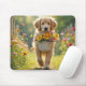 Mousepad Retriever de ouro caminhando com uma cesta de flor