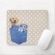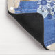Um ouro bonito no bolso de jean azul com margaridas no fundo da bolinhas.