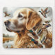 Retrato de um Retriever de Ouro com patos-reais em voo em dupla exposição