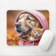 Mousepad Retriever ouro e Kitty em Hoodie Rosa