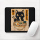 Mousepad Retro Anime Kawaii Black Cat Eating Ramen Noodles