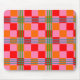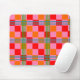 This mouse pad has a mid-century modern design of red, pink, and orange squares and green and blue lines forming a plaid design. If you like different colors, message me.