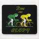 "Ride For Glory" captures the electrifying essence of a competitive bike race, showcasing a powerful moment of competition and determination. Around the image of a two-rider photo finish is the bold phrase "Ride For Glory" emblazoned in dynamic shades of yellow and green, inspired by the iconic leader and sprinter jerseys. The cyclists, locked in a fierce sprint to the finish, are drawn in motion with bold strokes that emphasize speed, grit, and athleticism. Image that behind them, stylized representations of the yellow jersey and green jersey billow like flags of victory, highlighting the dual pursuit of overall dominance and sprint supremacy. The illustration’s color palette is energized with professional-race-inspired hues—sun-bright yellow, lush green, and jet black outlines — creating a visual tribute to elite performance and high-stakes racing.