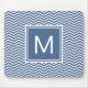 Um moderno mouse padrão de fevron azul e branco. Torná-lo pessoal adicionando sua inicial ao quadrado monograma.
