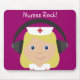 Rocha customizável das enfermeiras! mousepad cor-de-rosa escuro bonito/mousemat com uma enfermeira bonito do personagem de desenho animado que veste fones de ouvido. Um presente doce e adorável para enfermeiras de amor da música. Você pode mover-se, re-size, ou remova alguns dos elementos do design. A cor do texto, da pia batismal & do fundo é customizável. Se você precisa algum auxílio que personaliza seu produto me contacta por favor através de minha loja e eu serei mais do que feliz ajudar.