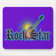 Texto "Rock Star" desenhado em preto, roxo e azul com guitarra e rajada de sol.