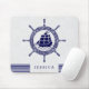 Ilustração de roda náutica azul-marinho com cobertura de paisley branca sobre fundo de damascos brancos. Monograma personalizável com faixas decorativas. Se precisar de ajuda para personalizar qualquer um dos meus designs, entre em contato com o designer do ArtOnWear. Formatação de texto livre com ajuda ao vivo disponível por solicitação.
