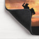 Um cowboy perseguindo um mustang selvagem num pôr do sol sudoeste. Um camundongo ocidental divertido.