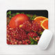 Este lindo bocal exibe sementes de romã vermelha, fatias de laranja e folhas de menta verde. A fotografia original de arte foi digitalmente aperfeiçoada para produzir um padrão impressionista de abstrato.