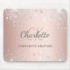 Mousepad Rosa dourado, monograma com brilho prateado