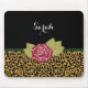 Um mousepad marrom dourado chique do impressão do leopardo decorado com uma rosa vermelha elegante. Faça estes impressão animal à moda e special vermelho do design floral adicionando o nome de sua menina favorita.