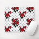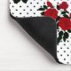 Mousepad Rosas vermelhas sobre um fundo de bolinhas.