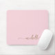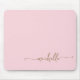 Mouse pad personalizado com monograma dourado e nome em letra cursiva, "Girly Blush Pink Simple Minimalist Gold Monogram Name Signature Script". Estes desenhos apresentam seu primeiro nome em uma linda tipografia de letra manuscrita com cauda em arabesco dourada sobre um fundo cor de rosa bebê claro ou rosa rosado. Muito fácil de personalizar. Presente feminino elegante e sofisticado para aniversário, dia das mães, chá de noiva, aniversário de 16 anos e é para a garota que ama coisas únicas e minimalistas.
