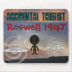 Quando os aliens caíram no Novo México e em outros lugares, em 1947, se tornaram turistas acidentais, Esta design comemora esses eventos com as palavras "TURISTA ACCIDENTAL, Roswell 1947" e uma representação de uma alienígena flutuando entre duas naves de prata que emitem campos de energia