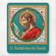 Este rotundo apresenta uma Rua pensiva. Bartholomew (também conhecido como Nathaniel; século 1rua) contemplando a nitidez de uma faca. Trazido a Jesus pela Rua Philip, o Apóstolo com quem ele está mais frequentemente associado, Ruas. Bartholomew pregou o Evangelho depois da Ascensão do Cristo na Ásia Menor, Etiópia, Índia e Armênia. Tradicionalmente, ele conhecia um martírio mais horroroso sendo esfolado ou esfolado vivo. Por isso, seus principais atributos são uma faca de galhardete ou de esfola... e (não mostrada aqui) uma pele humana! Adequadamente, ele é santo paternalista de talhantes e trabalhadores de couro — nomeadamente, curandeiros, livreiros e sapateiros. + Banquete: 24 de agosto + Image Credit (JMAS 03): Imagem antiga de Ruas. Bartholomew the Apostle de uma impressão em cromolithografia devocional do final do século 19 com acentos de marrã, originalmente publicada por Josef Müller, Art Publisher, Munique, Alemanha, da coleção privada do designer de epemera religiosa. A imagem é uma das doze da série Apostle do editor (nº 12155). + Preferir uma combinação de cores diferente? Consulte as matizes de coordenação sugeridas no cartão postal da Paleta de Cores para esta imagem. Cartões postais da Paleta de cores são encontrados na COLLECTION associada a uma imagem e na COLLECTION especial dedicada apenas a paletas de cores.