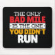 A Única Mile Ruim é a que você não executou - uma curiosa citação motivacional e inspiradora para um dia de corrida ruim, objetivo de RP que caiu abaixo, ou que atrasou o tempo de final de corrida. > Quer você seja treinador, treinador, atleta ou corredor de maratona de longa distância indo para um recorde de tempo, todos nós temos dias maus. Isto lembra-nos que continuamos a ser positivos! > Personalize-o! Adicione nome personalizado, foto ou texto.