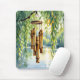 Um mouse pad ilustrando os moinhos de bambu pendurados em uma árvore-salgueira chorando com fundo de lago. Uma cena tranquila e pacífica.