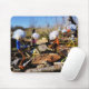 Mousepad Samenwerking van Fubby poppetjes op een houtwerkpl