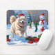 Mousepad Samoyed Correndo em Neve com Chapéu de Natal