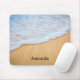 Mousepad com uma fotografia de uma praia ouro marrom arenosa com surf branco de espuma.