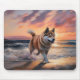 Mousepad Sandy Paws Akita Dog em Beach Sunset