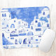 Uma pintura paisagística em aquarela da bela ilha grega de Santorini. Arte original de Nic Squirrell.